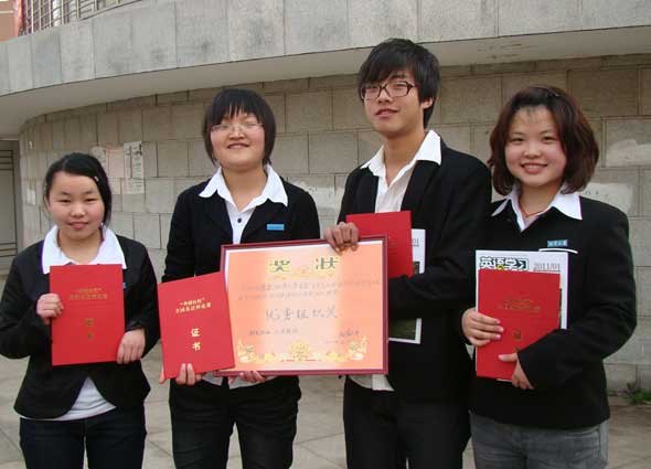 一等奖获得者邹雨柔、陈雅(左起一二) 二等奖获得者黄艺丹、李超勇(右起一二)
