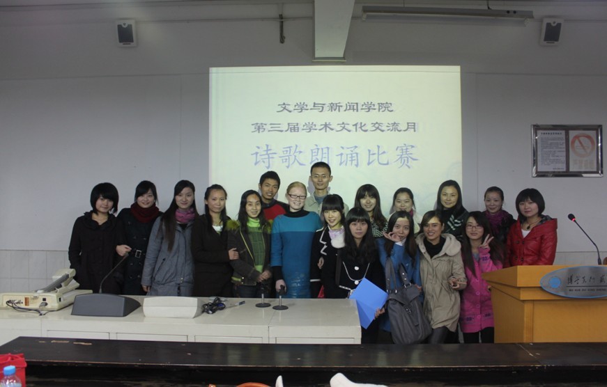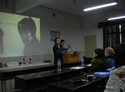 本网讯(唐湘成 杨璐菁)11月26日下午四点,公司诗歌朗诵比赛在法附楼302举行,主题为“十年”,是公司第三届学术文化交流月的一个子活动。公司研究生思政、教务干事曾莹老师和中文系沈云霞老师出席本次比赛并担任评委。