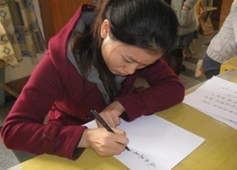 本网12月1日讯(唐湘成  杨璐菁)如果让你选择一种方式来描绘这个冬天,你会选择什么呢?冬是充满灵性的,更是充满诗情画意的,如同袅袅婷婷的湘大一般,笼罩在墨香氤氲之中。11月30日下午2点,文新书法比赛在文科楼504文新院画室举行,选手们用手中的笔,在一片墨香之中,来描绘这份浓浓的诗意。