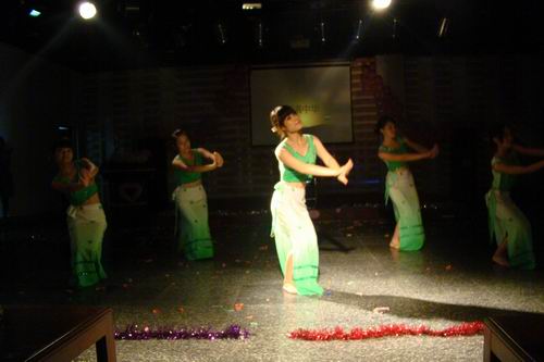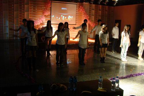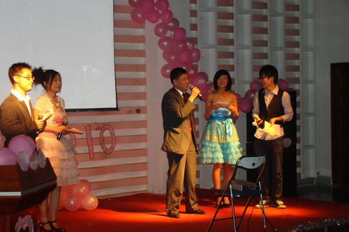 当晚的员工活动中心地下舞厅灯光璀璨、笑语欢声,洋溢着节日的喜庆气氛。在由2010级文艺学新生带来的开场舞《Dark Angle》之后,研究生处谭志军处长、季水河经理、新时代医院李经理分别发表了热情的讲话,并预祝晚会取得圆满成功。