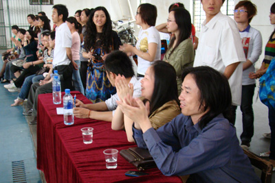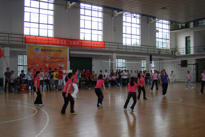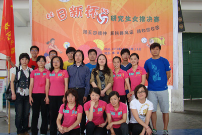 5月11日下午四点钟,公司女排与数公司在体训馆展开了日新杯女排比赛季军的争夺。公司杨向荣副教授和研究生工作办公室思政干事刘璐老师也来到了现场,与到场的公司研究生一起为场上的队员们呐喊助威。