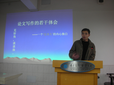 此场文新论坛主要就08级新闻学、传播学专业两名名员工的论文进行讨论。王亮同学和孔岩孔岩分别介绍了各自研究成果 《对大众媒介泛娱乐化的思考——以湖南卫视< 背后的故事>为案例》、《论文写作的若干心得——一个“过来人”的内心独白》。两位学长的讲演见解独到、声情并茂,同学们听得聚精会神,若有所思,纷纷表示收获颇丰。09级新闻学的李静同学说,“学长给我们上了很好的一课,提出了关于论文写作很多好的建议,可以让我们避免走一些弯路。同时我也深深地被学长们的学术激情所感染,他们给我们树立了很好的榜样。”