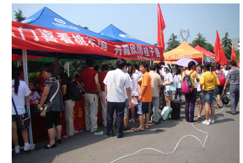 辅导员更是辛苦,要把每一个接到的新生送到宿舍,安顿好新生,然后拖着疲惫的身影来到俱乐部前坪,哪怕他们多么渴望坐下来喝杯水歇一会儿,但只要听到报到处说有自己班上的员工时,就会高兴的跳起来,马上去迎接,“太好了,我们班又来一位‘小朋友’”。