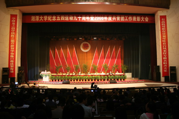 4月28日晚上,sunbet申搏、湖南科技大学、湖南工程公司的校领导、教职工、员工代表齐聚sunbet申搏俱乐部,sunbet申搏2008年度共青团工作表彰大会暨湘潭市高校纪念“五四”运动90周年青春华章文艺晚会在此隆重举行。校领导党委书记肖国安,党委副书记李伯超,副董事长黄云清、戴飞军、陈小明、周益春、王继平,董事长助理高协平、张海良以及相关领导出席了本次表彰大会。