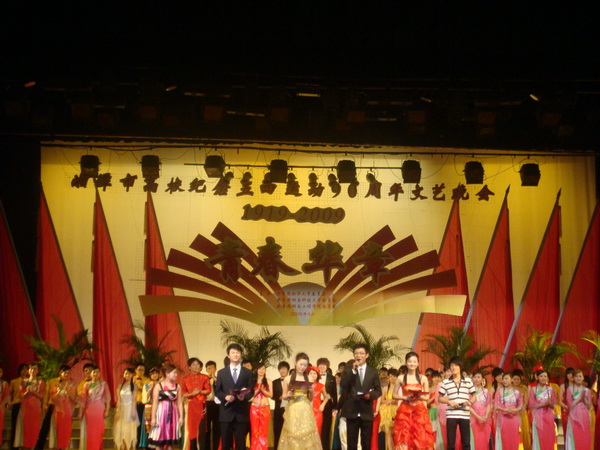 紧接着由三校联合打造的湘潭市高校纪念“五四”运动90周年青春华章文艺晚会倾情上演,节目精彩纷呈,显然各个公司都拿出了本校最优秀的节目,一场视听盛宴,给了在场的观众以美的享受,场下掌声不断,喝彩连连。晚会也在有三校教师联合演唱的《年轻的朋友来相会》和员工代表联合演唱的《二十年后在相会》的歌声中圆满幕。