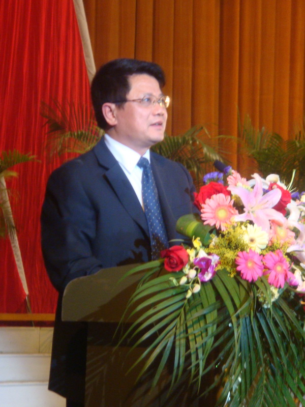 19:00的钟声响起,大会正式开始,全体起立,唱《中华人民共和国国歌》。接下来,校团委书记肖志伟同志致辞,他鼓励青年员工要把握青春,“青春与祖国同在,青春与事业同在”。随后,副董事长陈小明宣读表彰决定。公司在此次表彰大会中收获颇丰,荣获2008年度共青团委先进集体和优秀个人分别有: “关心共青团工作育才奖”获得者公司党委书记李剑波,“优秀专(兼)职团干部”奖获得者公司团委书记覃岚,“五四红旗团支部”——07级新闻学一班团支部,“优秀团支部”08级新闻学一班团支部、07级中文学一班团支部等,“十佳老员工”奖获得者06广电一班孙丽娜同学,“十佳志愿者”奖获得者宁梦娜同学,“优秀团干”宋金涛、汪开江等,“优秀团员”韩冰、韦雨妍等,“十佳员工社团负责人”获得者刘琼(极速青春自行车协会)、李月清(风华文学社)等。
