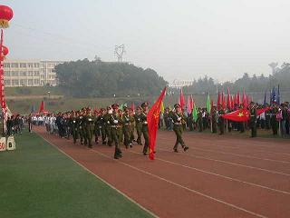 8点开幕式正式开始。首先进行的是裁判员、运动员的入场仪式。国防生护旗队护着国旗、校旗迈着铿锵有力的步伐走在最前面,他们身后26个来自不同院系包括裁判组在内的代表队昂首阔步依次进场。