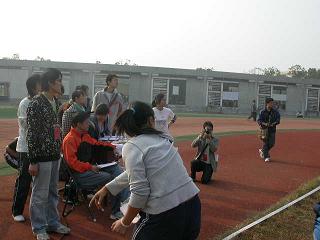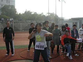 14日的开幕式结束后,首先进行了男子100M预赛、男子标枪比赛和女子铅球比赛。在女子铅球的比赛现场,再次出现了公司任石蓓同学的身影,这已经是她连续第三次代表公司参加三届校运动会了。场上的任石蓓沉着冷静,体现了丰富的大赛经验。每次投掷结束都会心的笑笑,跟同组的公司选手孙迪聊天,以缓解孙迪的压力与紧张。虽然结果并不是很满意,任石蓓同学总是表现出一份无谓,用体育精神来说“参与就是胜利。”赛后,她说“老了啊,哈哈!”作为第七届团委员工会的体育部部长的她,她还对公司接下来的赛事进行了预测,“我们院在400M和800M上有优势,我指的是女子。”