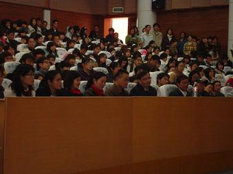 本来3:00开始的讲座,但提前半小时报告一厅已座无虚席,后面来的同学不得不站在最后一排,或者坐在了走道中间的阶梯上。大家都对《新闻学概论》的作者李教授充满期待。到3点,李教授先到前台鞠躬,全场都起立鼓掌。在简单介绍过以后,李教授用他直白幽默的语言开场。切入主题,他首先用一组组的数据,经过与其他国家,与世界平均水平的对比让大家认识到中国新闻改革30年后的状况。