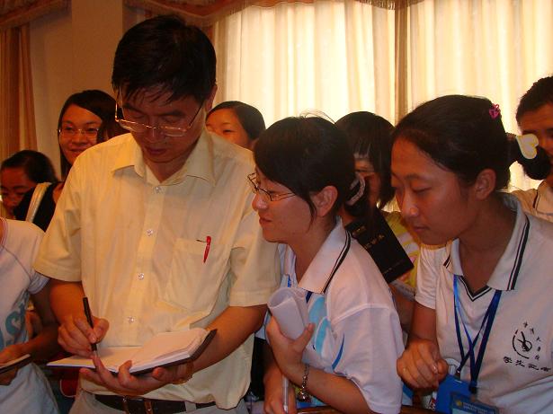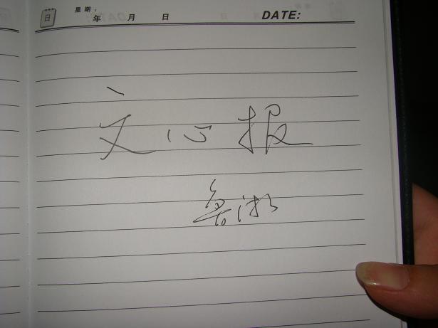 演讲结束后,他接受了同学们的提问并一一解答,而他的不少“粉丝”把他团团围住“索要”签名,他欣然地在一个又一个本子上写下“王鲁湘”三个漂亮的大字,并为公司院报写下“文心报 鲁湘”五字。