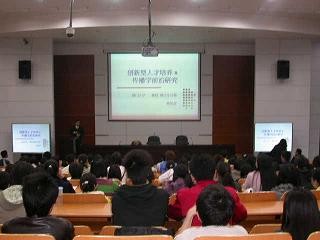 陈培爱教授的演讲题目是《创新型人才培养与传播学前沿研究》。在近两个半小时的演讲时间,陈培爱教授给大家带来了一场精神饕餮盛宴。陈教授首先从他教过的员工中列举了“四个员工代表”,如中央电视台广告部主任夏洪波、广州天进整合营销传播机构董事长冯帼英等,告诉我们创新型人才是需要培养的。在分别进行讲述的创新性人才怎样培养、关于创新型人才的培养问题的思考等问题后,陈教授开始用“易中天现象”等三个例子为我们诠释了何谓创新性人才。之后为我们讲述了创新型人才培养存在的问题,创新性人才培养的人文环境。最后他给我们总结了一个公式“正确的人生观——美丽的校园——宽松的文化——优秀的教师——良好的设施——一流的人才”,用他的话说“这是培养人才的黄金公式,是必要条件!”。然后陈教授简单的为我们阐释了关于新闻传播学前沿问题的关注。最后,陈教授与同学们互动交流,回答了在场同学的提问。