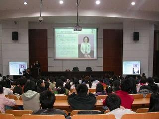 4月12日晚7时逸夫楼报告二厅氛围热烈,掌声如雷。正在进行的是厦门大学陈培爱教授的精彩讲学——《创新型人才培养与传播学前沿研究》。