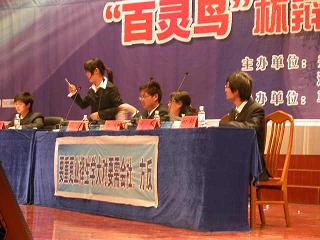 (本网讯)4月26日下午3:50分左右,第十三届百灵鸟杯辩论赛复赛的最后一场在员工活动报告厅拉开帷幕,文新院院与法公司就“个人需要与社会需要哪个对老员工择业更重要”这一辩题经过了近一个小时的激辩,最终,文新院获得辩论赛的胜利,而优秀辨手也由文新院的二辩杨曦同学摘得。