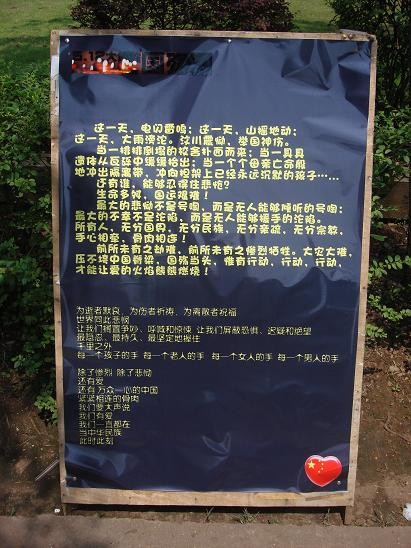 此次图片展也得到了sunbet申搏的大力支持。学工办老师在紧张的员工活动经费里特批了部分经费用于此次图片展,覃岚老师还一再强调“要把图片展搞好,一定要提高图片的清晰度”。据悉,“祈福汶川”图片展还将在南苑和金翰林展出。请大家多关注,共同为灾区同胞祈福