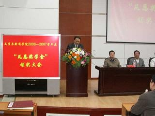 公司李剑波书记主持会议,在他宣读获奖名单后,五位获奖同学上台领奖。04级新闻学2班李纯、04级广播电视新闻学2班贾肖虎、05级新闻学2班米艳军、05级汉语言文学2班蓝敏国和06级广告学1班朱利平获得了本次“凡恩奖学金”。蓝敏国代表获奖同学发表获奖感言,抒发了深深的感恩之情。