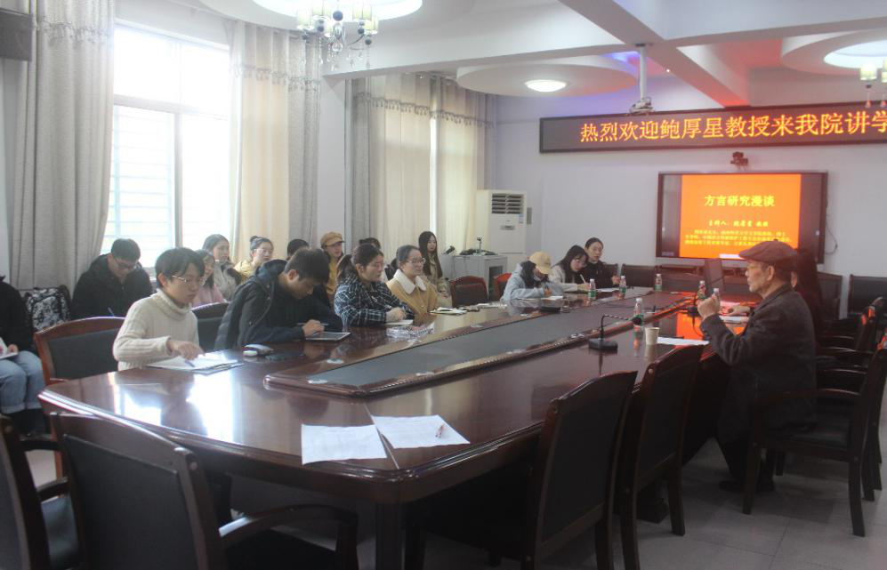(通讯员 陈虹 全艳琳 摄影 朱克克)12月6日下午14:30,中国语言资源保护工程专家咨询委员会委员,湖南语保工程首席专家,湖南师范大学文公司教授、博士生导师鲍厚星莅临公司第三教学楼317会议室,为公司师生作题为《方言研究漫谈》的学术讲座。此次讲座由陈山青教授主持,公司唐智燕教授及全体语言学、文字学专业研究生现场聆听。