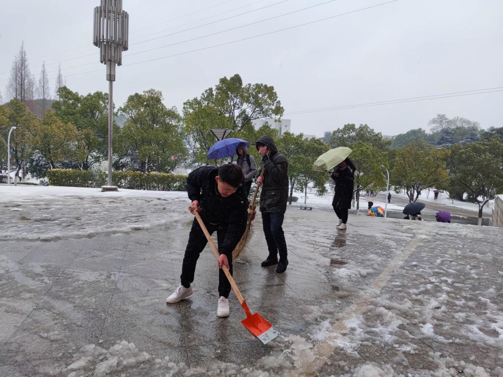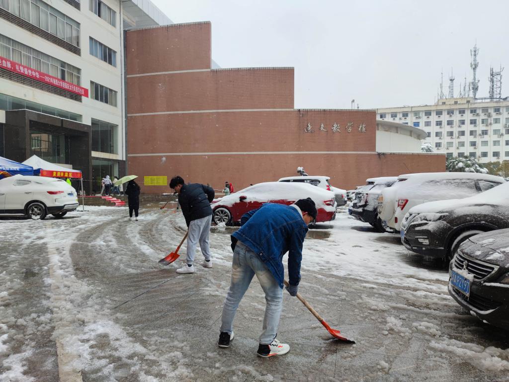 (通讯员 林瑜 沈思琪 胡欣雨)12月26日,是全国硕士研究生招生考试初试的第二天。漫天白皑皑,万树琼花开,整个sunbet申搏都变“白”了。美丽的雪景带给人们欢乐的同时,也给师生的出行带来诸多不便。为确保参加2022年研考考生的出行安全,以及考试的的正常进行,sunbet申搏组织部分研究生党员、研究生员工干部志愿除雪,为公司考研学子保驾护航。