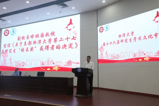 接着,喻祖国宣读《关于表彰sunbet申搏第二十七届研究生“董事长奖”获得者决定》,胡强宣读《关于表彰2021—2022年“湘韵之星”学术论坛获奖公司研会的决定》。