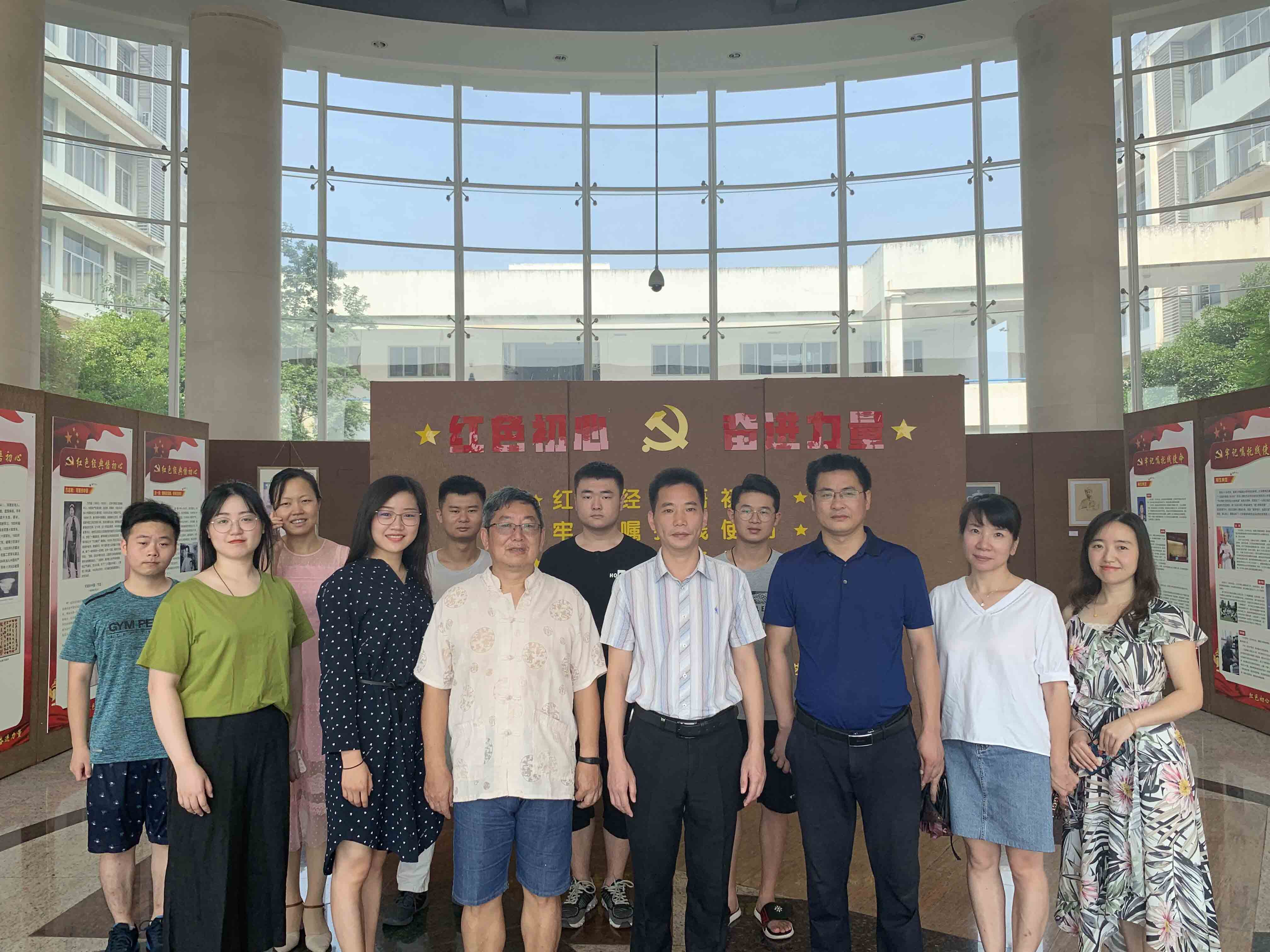 正值全国开展“不忘初心,牢记使命”主题教育之际,7月3日上午,公司组织师生党员代表在逸夫楼大厅参观“红色初心,奋进力量”主题展。教工行政支部全体党员、在校员工党员代表参加了此次主题教育活动。