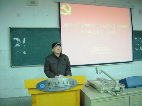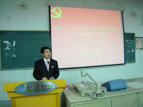 320日晚700,sunbet申搏党委党校第78期员工入党积极分子培训暨开学典礼在经管楼202教室举行。此次培训由sunbet申搏分党校、公共管理公司分党校、旅游管理公司分党校联合承办。出席此次党校培训的领导有sunbet申搏机关党委书记、党校副董事长刘稳丰老师;文学与新闻公司党委书记李剑波老师、党委副书记唐春老师,学工办肖小亮老师;旅游管理公司党委副书记陈非文老师,团委书记陈敏老师;公共管理公司党委副书记刘纯老师,学工办肖妮老师。