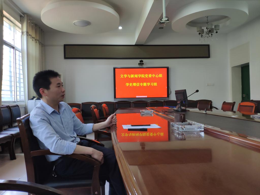 2021年4月30日文学与新闻公司党委中心组开展党史学习教育读书班第二次专题学习。公司党委书记赵猛主持会议。他指出要根据省委关于党史学习教育的统一部署和公司党委党史学习教育总体工作安排,组织院,在贯通学史明理、学史增信、学史崇德、学史力行的基础上,突出“学史增信”主题,做到全体党员深入学习。