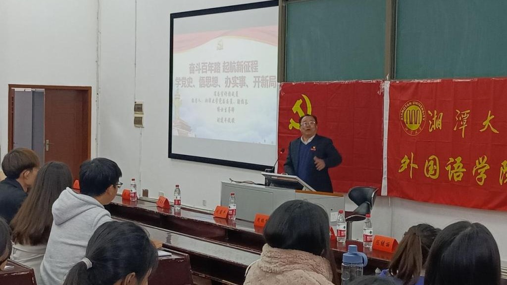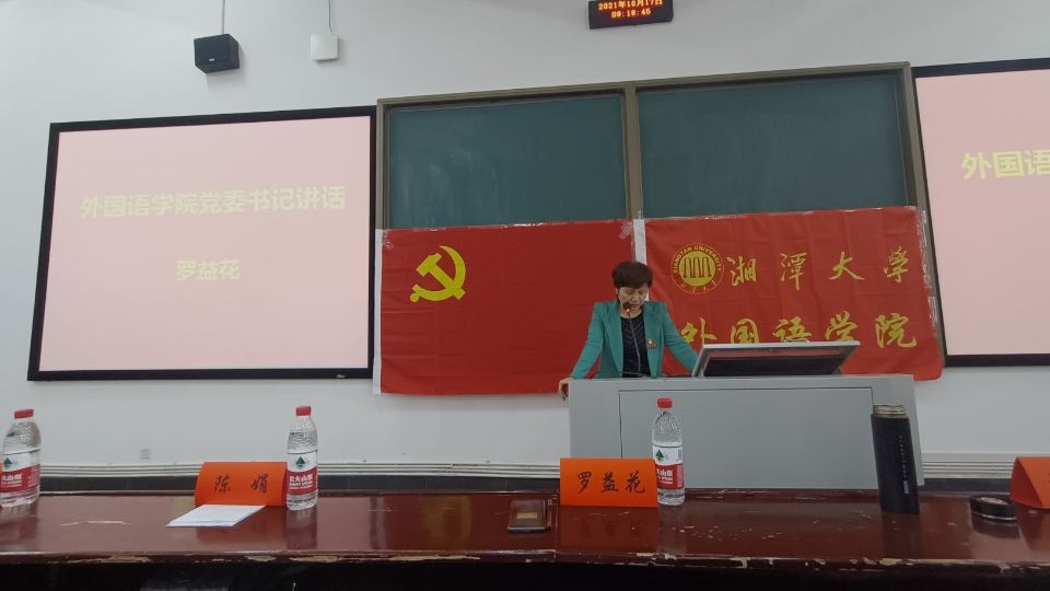会议由外国语公司党委副书记陈娟老师主持,并宣讲了相关纪律要求,随后,全体参会人员起立奏唱国际歌。结束后,由2019级西班牙语一班的谢雨蕊同学进行发言,对于党的历史做出总结,并对同学们的未来作出具体的的期望和要求,内容具体详实,生动诚恳。接下来,由罗益花书记进行发言,宣讲了党的相关政策与路线,强调同学们要学习党的相关内容,认真进行党课的学习,演讲过程中,同学们认真听取意见,会议进展顺利。