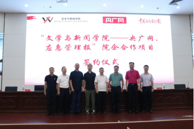 为了提高员工实践能力、就业能力和创新能力,完善人才培养机制,推进毕业生就业工作。9月11日上午,公司与央广网、中国应急管理报两家单位在研究生院报告厅举行了校企合作签约仪式。公司党委副书记廖永安教授与中国应急管理报内参部主任、央广网南方应急融媒报道中心主任黄雄、央广网湖南频道副总编辑张志诚共同签署了校企合作协议。经理雷磊教授、央广网文化传媒有限公司湖南分公司工作负责人林得雨、校教务处副处长杨伟、杰出员工程兴国先生、公司相关负责人及全体新生等600余人共同见证了签约仪式。