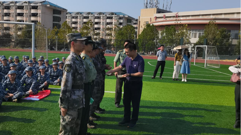 9月27日下午,公司经理雷磊、党委书记资义平、党委副书记周鹏飞同新生班主任、学工办老师赴第田径场看望公司军训新生。