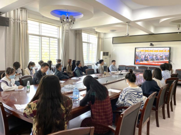 10月16日上午9点,师生们来到了文科楼318会议室,围坐在屏幕前共同收看党的二十大开幕会直播。会议伊始,参会师生集体起立奏唱国歌,在悠扬的国歌声中会议开始了。在习近平总书记为时两个多小时的报告过程中,在场师生始终认真听取会议内容,并记录报告重点,收看现场不时自发地响起热烈的掌声。