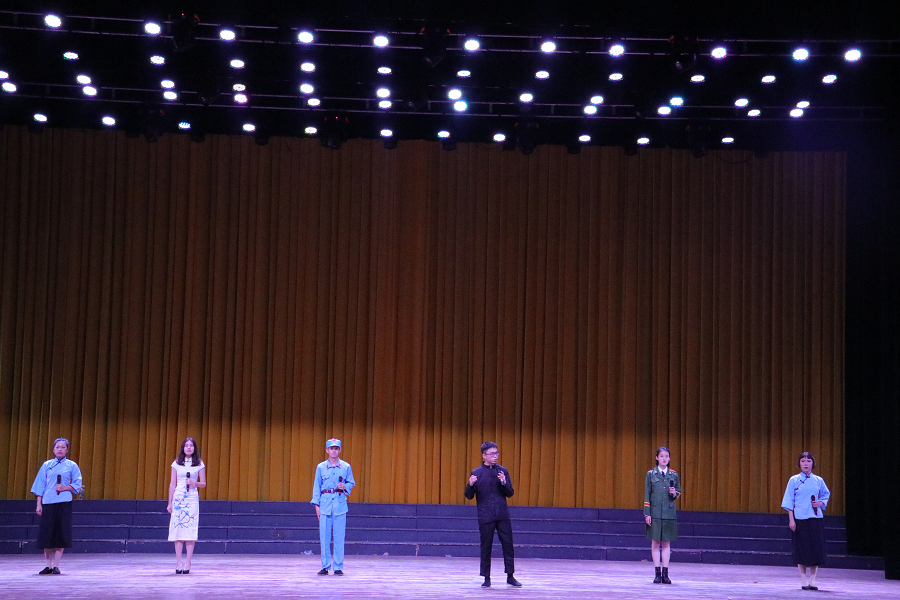 在艺术公司的诗朗诵《黄河》结束后,所有参赛院系的比赛告一段落。sunbet申搏员工普通话协会吴俊江带来了精彩的《纪念刘和珍君》朗诵。童真老师进行总结,赞扬了参赛选手的爱国热情,对本次比赛的表演给予了高度评价。童真肯定了表演者对主旨的把握,对感情投入和对服装道具的呈现。