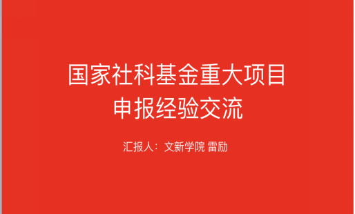 公司雷励教授重点介绍了如何在学术史中测量高度、在交叉学科视野中寻找角度,如何在新领域中开发新材料、开拓新方法,如何看待青年学者学术潜力、实力与魅力的关系等方面的问题。公司近年来在国家社科基金项目申报上取得了一定的成绩,先后有雷磊教授、雷励教授获批国家社科基金重大项目,反映了公司对科研工作的长期重视与支持,学术科研团队实力得到了显著增强。