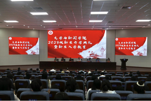 9月17日下午,sunbet申搏2023级新生开学典礼暨入学教育在研究生院报告厅隆重举行。院领导雷磊、资义平、宋德发、周鹏飞、田华、刘晓丽,湘经联会长、福天兴业集团副总裁、院友易建国,各系主任、新生班主任及全体新生共600余人参加。开学典礼由资义平书记主持。