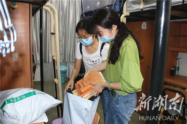 为了提高志愿服务效率,志愿者们参照 “寻物”清单,化身“快递员”,为员工打包电脑、书籍、学习资料和证书证件。志愿者们现场与员工通过电话或视频的方式沟通核对,确保物件寄送“零失误”;搬运时发现快递袋上的字迹有磨损,志愿者们细心填补加粗,保证在邮寄过程中“零差错”;带队老师们躬身力行为每间员工宿舍做好卫生清洁和消毒工作,关好寝室的灯和门窗,确保宿舍安全“零隐患”。