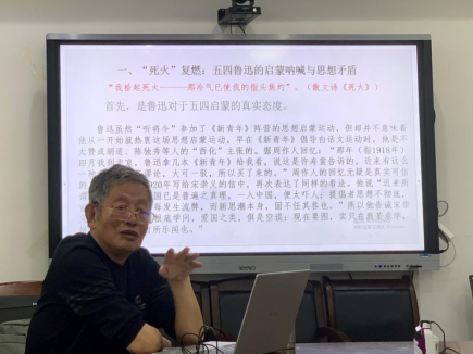 宋剑华教授以鲁迅的散文诗《影的告别》作为切入点,深刻解读了五四时期鲁迅“寂寞”与“孤独”的精神状态和“绝望与虚妄”的颓唐情绪。接着,他从“‘死火’复燃:五四鲁迅的启蒙呐喊与思想矛盾”、“‘冰谷’之寒:鲁迅生命的黑暗时刻与精神颓唐”、“‘碰壁’之余:困境鲁迅的无地彷徨与困境绝望”三个方面给在场师生讲述了鲁迅在人生至暗时刻的文学言说。