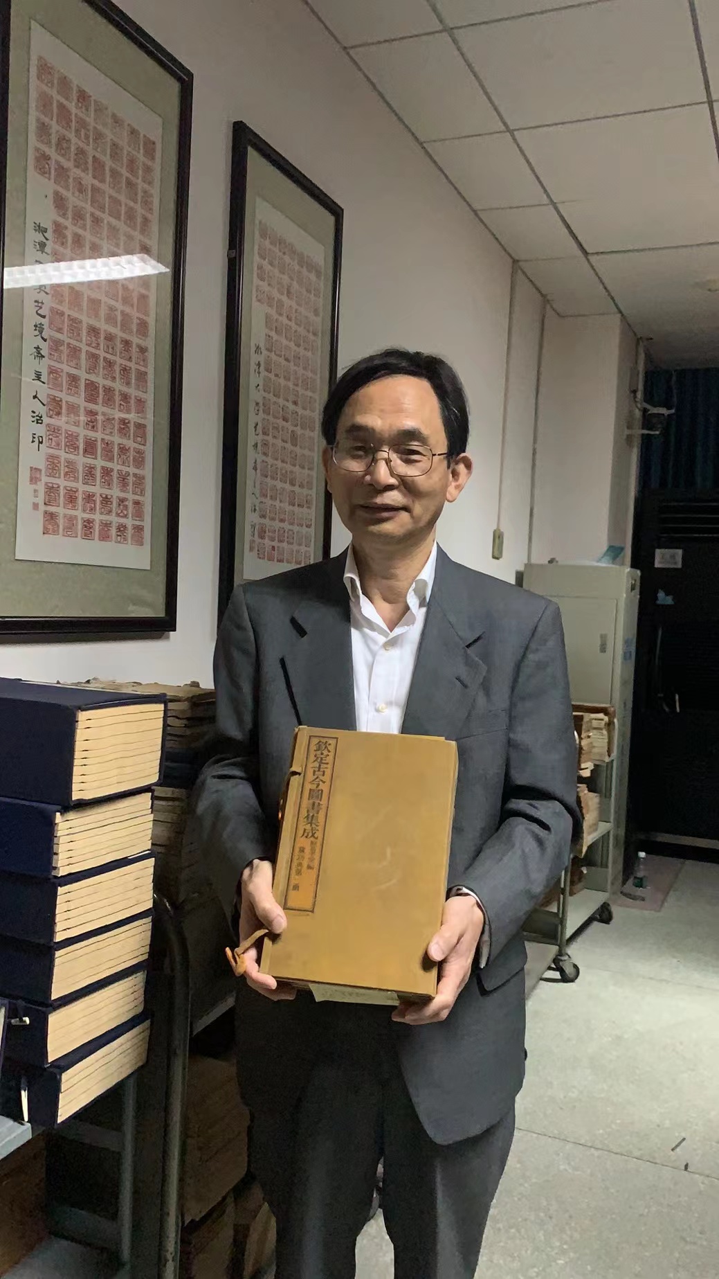 胡家建院友应邀参观了校图书馆,与校图书馆镇馆之宝《钦定古今图书集成》留下珍贵合影。他称赞公司留存的《钦定古今图书集成》是世界上最完备的版本。