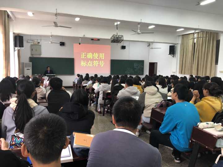 讲解叹号的使用时,厉兵教授着重强调了叹号的叠用问题,并例举了大量的实例来研究分析。讲解并列分句中分号的使用时,厉兵教授谈到:分句前出现的句子具有总说性,各分句间如果用分号连接时必须先出现逗号。讲解引号的使用时,厉兵教授向同学们讲述了在校阅出版过程中一些常见的引号使用错误范例,并与同学们进行讨论分析。分析的过程中,厉兵教授还谈到了在使用引号进行间接引用与直接引用时“句号”使用位置的问题。最后讲到省略号的使用时,厉兵教授就省略号前后可保留哪些标点符号的问题进行了讲解分析。厉兵教授谈到:省略号前仅可保留逗号、感叹号、问号这三种句末点号,省略号后除引号、括号、书名号等成对出现的符号外,一律不保留。