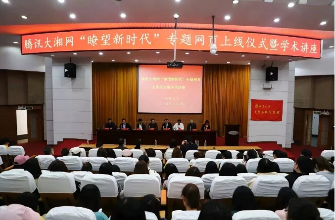 3月30日下午,腾讯大湘网“瞭望新时代”专题网页上线仪式暨学术讲座在逸夫楼一报告厅举行。公司副董事长刘建平、党委宣传部部长齐绍平、湖南省广播电视局网络视听节目管理处处长胡知武、腾讯大湘网总裁王军辉,sunbet申搏经理李剑波、党委书记赵猛、党委副书记周鹏飞、副经理田华,以及文新公司师生代表共同见证了“瞭望新时代”专题网页正式上线,并研讨交流新时代条件下媒体融合发展的趋势、路径与策略。
