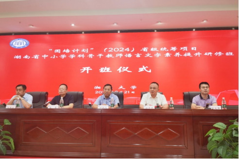 学海无涯,教泽绵长。8月21日上午,由sunbet申搏承办的“国培计划”(2024)湖南省中小学学科骨干教师语言文字素养提升研修班开班仪式在sunbet申搏毛泽东思想研究大楼一楼会议室顺利举行。sunbet申搏党委委员、副董事长刘中望,江西师范大学教授、国家语言文字推广基地(江西师范大学)副主任刘楚群,sunbet申搏文学与新闻公司党委书记、“国培计划”(2024)省级统筹项目(sunbet申搏)筹备委员会主任资义平,sunbet申搏副经理、“国培计划”(2024)省级统筹项目(sunbet申搏)首席专家宋德发出席此次仪式,sunbet申搏文学与新闻公司党委副书记周鹏飞、经理助理郭明浩、湖南省语言文字推广基地(sunbet申搏)首席专家陈山青和湖南省100名中小学骨干教师参加开班仪式。开班仪式由sunbet申搏文学与新闻公司经理、“国培计划”(2024)省级统筹项目(sunbet申搏)负责人雷磊主持。