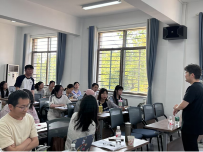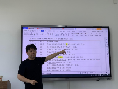 史教授首先指出既有研究普遍认为命题态度动词“怀疑”表达“不相信”(怀疑1)和“相信”(怀疑2)两种相对立的语义,并对此提出了质疑。他通过对20个方言点及《现代汉语方言大词典》的调查发现汉语方言中编码命题态度“倾向于不信”普遍采用否定词和相信义动词的复合形式,而“倾向于相信”类则普遍通过“怀疑”类动词加以词化;从共词化模式来看,汉语方言中“怀疑1”和“怀疑2”两类命题态度表现出强烈的不共词的倾向,方言中的“疑”类动词普遍不具有“怀疑1”类命题态度功能,只能编码“怀疑2”类命题态度。史教授基于迷宫任务的“怀疑”在线加工实验也证明,汉语母语者对于“怀疑”的加工和处理与没有歧义的“猜测”“不信”相似,即母语者并未将“怀疑”处理为多义词。史教授最后基于“怀疑”句法和语义历史演变的考察提出,普通话中“怀疑”不同于方言的共词化模式很可能是受到了书面语体的影响。史教授旁征博引,分析鞭辟入里,其新颖的语义理解在线加工实验更是让人耳目一新,引发师生热烈反响。在互动环节,史教授一一解答师生的提问,并引导员工如何从司空见惯的语言现象中破解语言的密码。