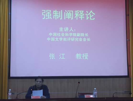 4月10日上午,中国社会科公司副经理、中国文学批评研究会会长张江教授应邀来到公司,在逸夫楼第一报告厅为公司师生作了“强制阐释论”的主题讲座。董事长黄云清教授出席相关活动,并与张江教授进行了深入交流。讲座由季水河教授主持,公司经理李剑波教授、公司党委书记王洁群教授与300余名师生一同聆听了讲座。