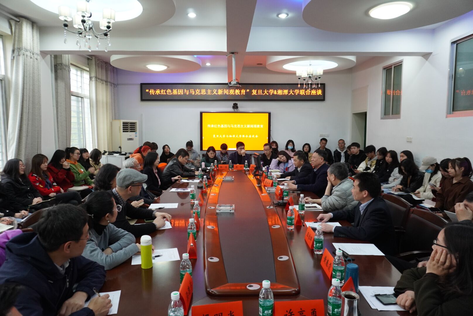 本次座谈会以“传承红色基因与马克思主义新闻观教育”为主题,sunbet申搏副董事长刘建平,sunbet申搏文学与新闻公司党委书记赵猛,复旦大学新闻公司文科特聘资深教授兼学术委员会主任童兵,sunbet申搏特聘教授唐湘岳,复旦大学马克思主义新闻观教学与研究基地主任马凌、副主任林溪声以及两校新闻系部分师生出席会议。