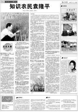 2006年1月17日,我和胡婷玲采写的长篇通讯《知识农民袁隆平》发表在光明日报人物周刊,登了一个整版。