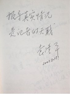 我有一个留言本,上面是我的重要采访对象的留言。袁老师当然也留了言的。他的留言是:“报导真实情况 是记者的天职。——袁隆平2005年8月13日”