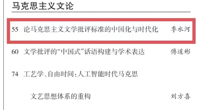近日,公司季水河教授的学术论文《论马克思主义文学批评标准的中国化与时代化》(原载《文学评论》2023年第2期),被人大复印报刊资料《文艺理论》2023年第10期全文转载。