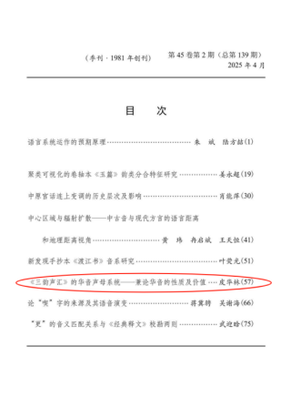 近日,公司皮华林副教授在《语言研究》(CSSCI)2025年第2期发表论文《〈三韵声汇〉华音声母系统——兼论华音的性质及价值》。