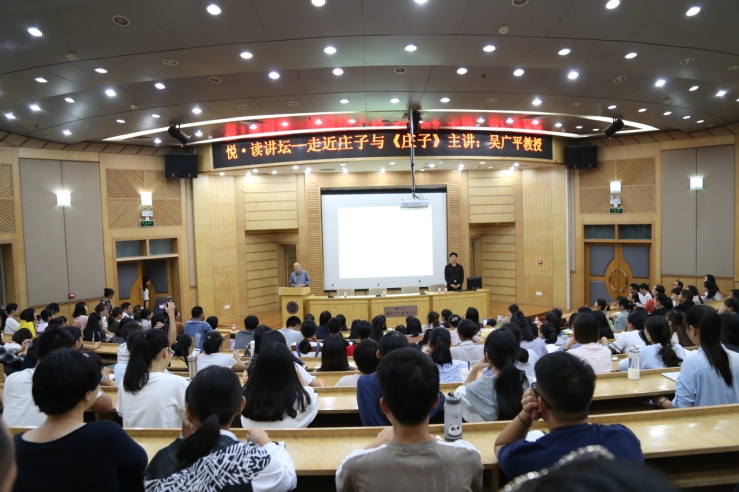 在两个半小时的讲座中,吴广平教授用他的幽默、激情、睿智和浪漫,带领听众不仅“走近”,而且“走进”了庄子的哲学世界和《庄子》的文学世界。