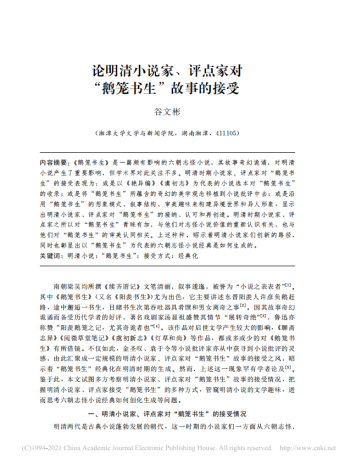 公司古代文学专业谷文彬副教授的论文《论明清小说家、评点家对“鹅笼书生”故事的接受》刊发于《华中学术》2021年第3期(CSSCI)。