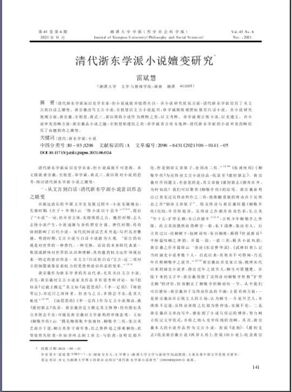 公司古代文学专业教师雷斌慧副教授的论文《清代浙东学派小说嬗变研究》刊发CSSCI期刊《sunbet申搏学报》2021年第6期。