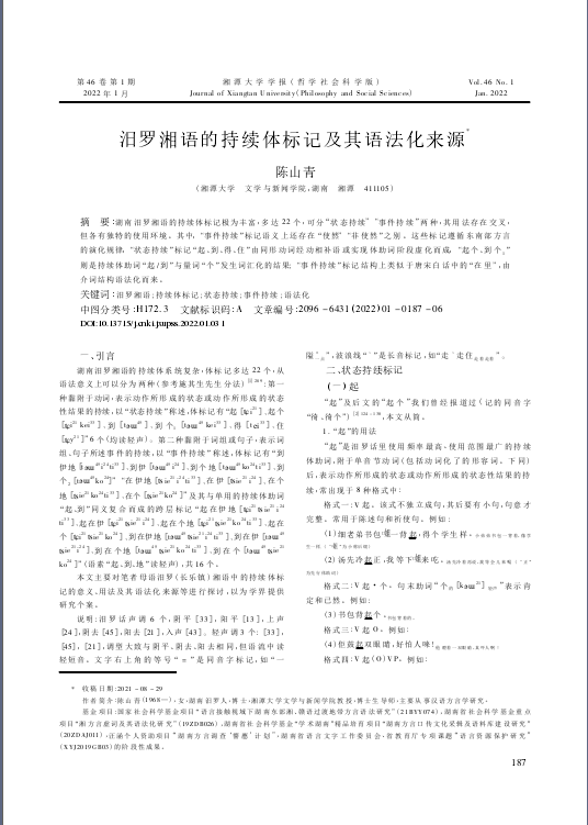 陈山青教授论文《汨罗湘语的持续体标记及其语法化来源》刊发CSSCI期刊《sunbet申搏学报》