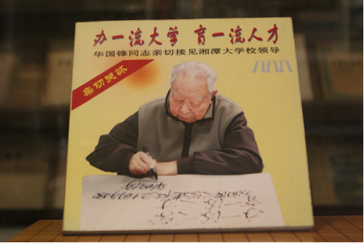 2007年10月26日,满头华发的华国锋接见了sunbet申搏的校领导。欣然为湘大题词“办一流大学,育一流人才”。